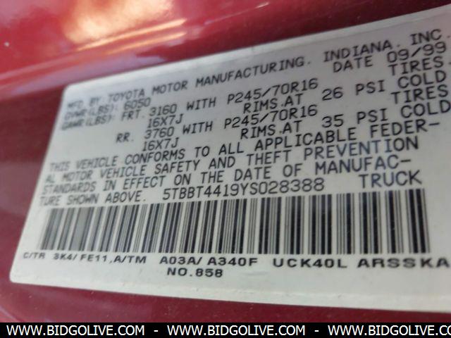 2000 TOYOTA TUNDRA SR5 4 Door EXT Cab Pk