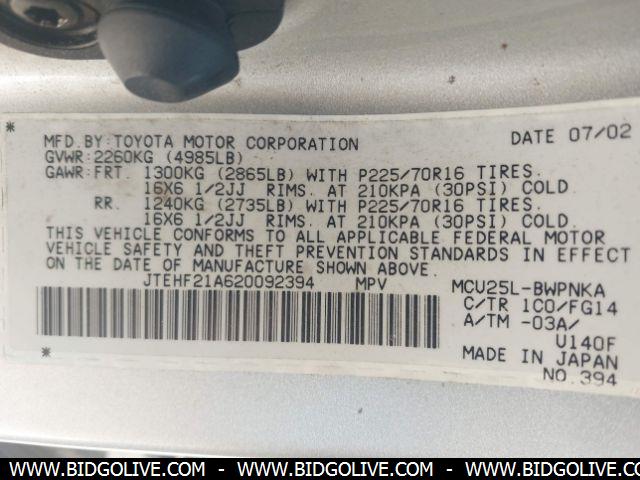2002 TOYOTA HIGHLANDER LIMITED Wagon 4 Door