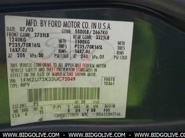 2003 FORD EXPLORER XLT/XLT SPT/NBX Wagon 4 Door