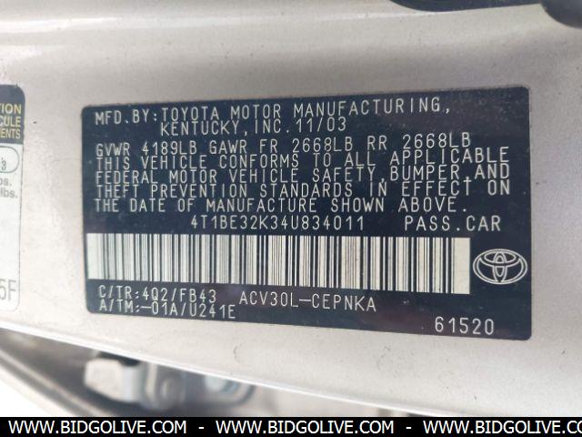 2004 TOYOTA CAMRY LE/XLE/SE Sedan 4 Door