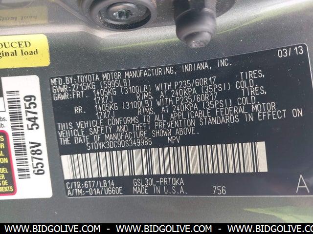 2013 TOYOTA SIENNA XLE SPORTS VAN