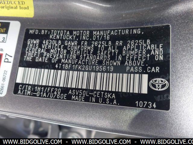 2016 TOYOTA CAMRY SE/LE/L/XLE SEDAN 4 Door